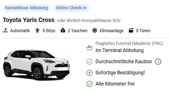 Moderne Mietwagenanbieter auf Madeira bieten zunehmend kontaktlose Abholoptionen an. Nutzen Sie diesen Service, um lästige Warteschlangen an der Vermietstation zu vermeiden. Bei dieser praktischen Lösung können Sie Ihr Fahrzeug oft direkt am Parkplatz über eine App oder einen Schlüsseltresor übernehmen – ganz ohne persönliche Schlüsselübergabe. - Achten Sie auf günstige Tankbedingungen